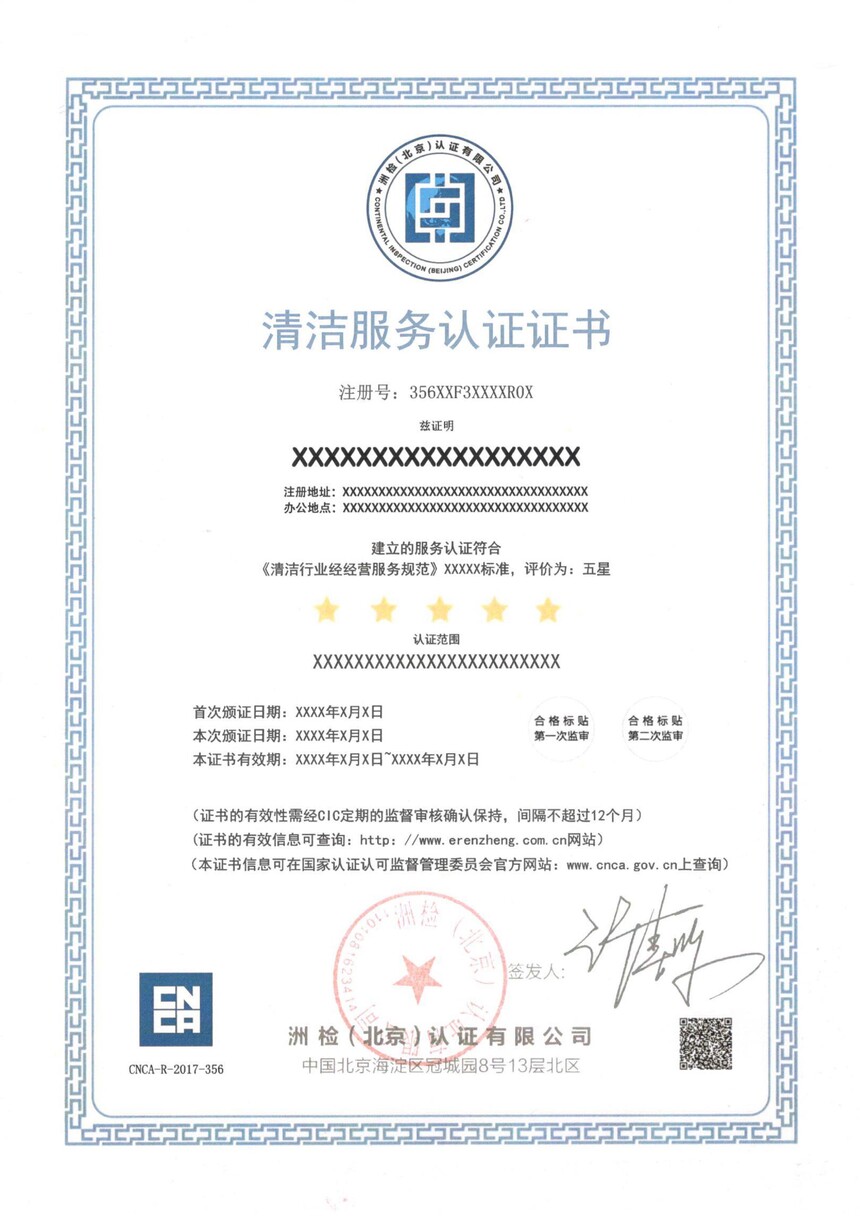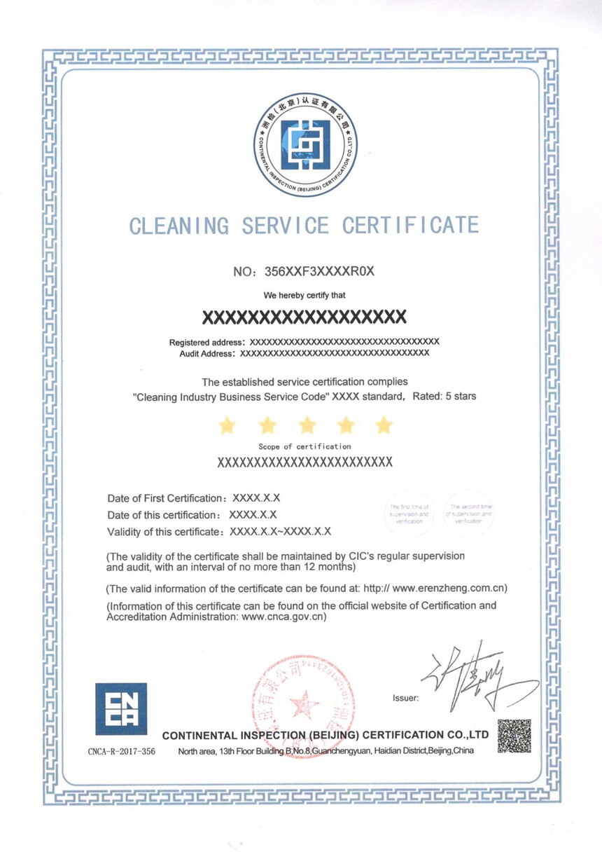 首頁 >> 證書樣本 >>證書樣本 >> 清潔行業服務認證證書(中、英)